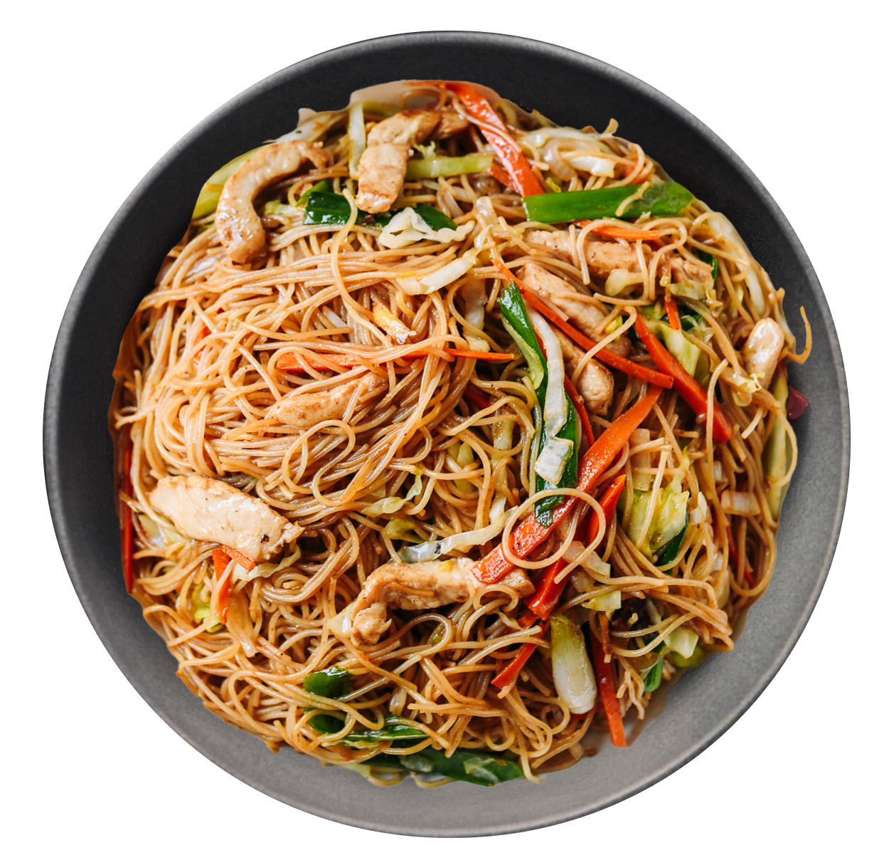 (Stir fried noodles with vegetables with a hint a say)