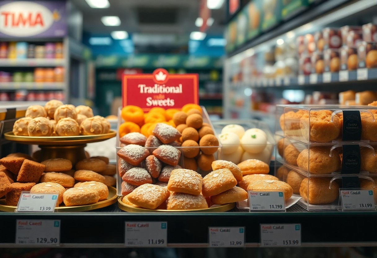 In Canadian markets you’ll most often find gulab jamun, rasgulla, jalebi, ladoo and kaju katli stocked by local mithai shops and grocery chains in Toronto, Brampton and Vancouver; supermarkets carry branded boxed sweets and online retailers list festival assortments year-round, with demand spiking around Diwali and Vaisakhi.